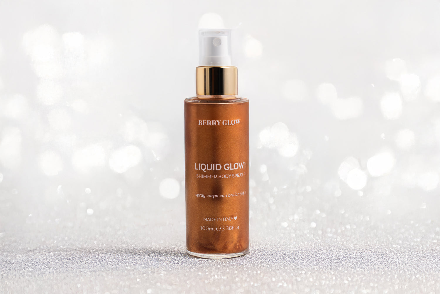 Liquid Glow è lo spray corpo illuminante che avvolge la pelle in un irresistibile luccichio dorato